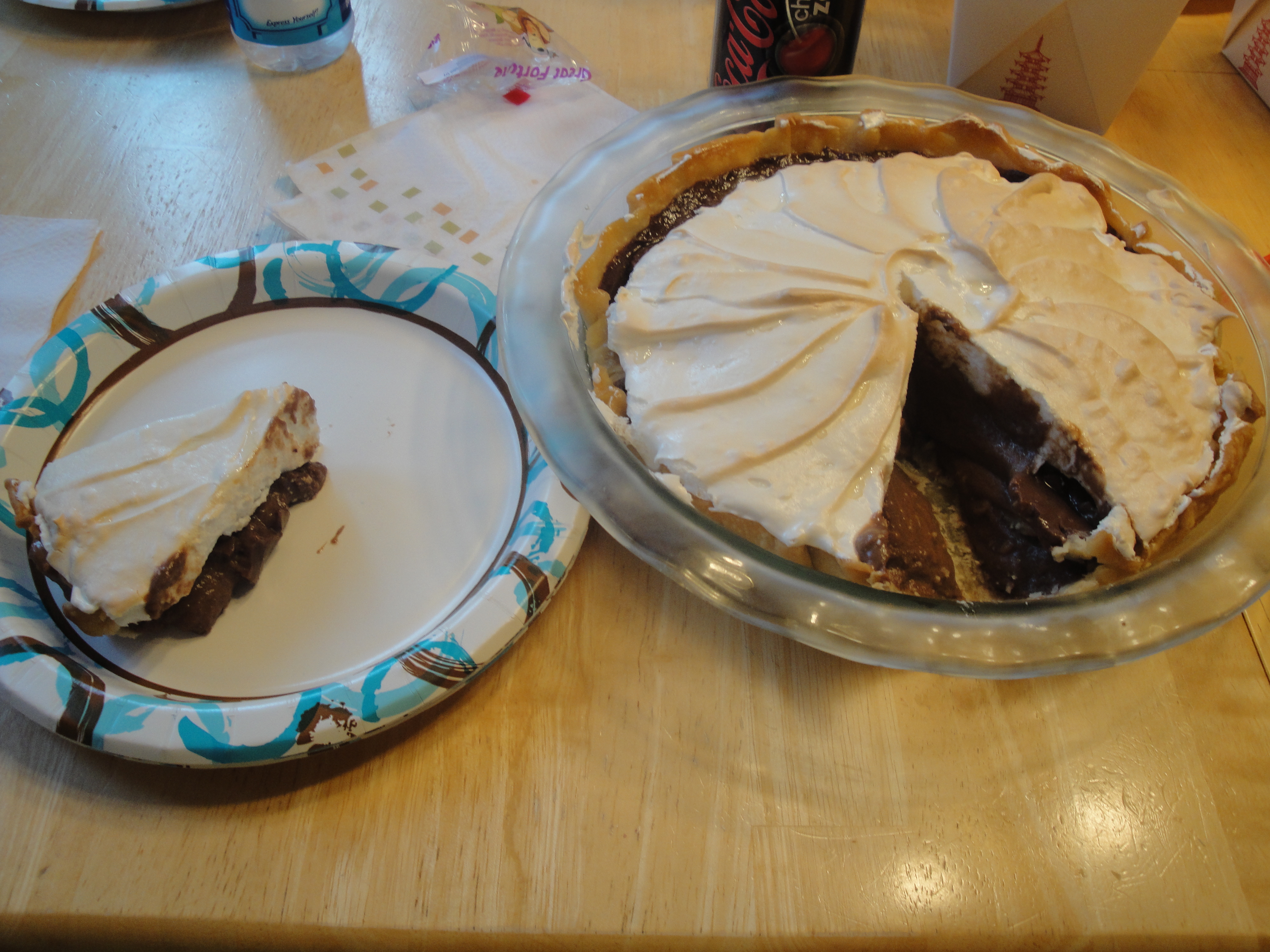 Last night I made this Reese’s Peanut Butter Cup Pie after I got home from my daughter’s chorus concert. I had to drop by the store first because I was about out of eggs and pie crust stuff. Can’t let that happen. So I didn’t begin baking until about 9:00. Both pies I made were baked, cooling, and cleaned up by 10:00. So they were definitely what I classify as easy pies.