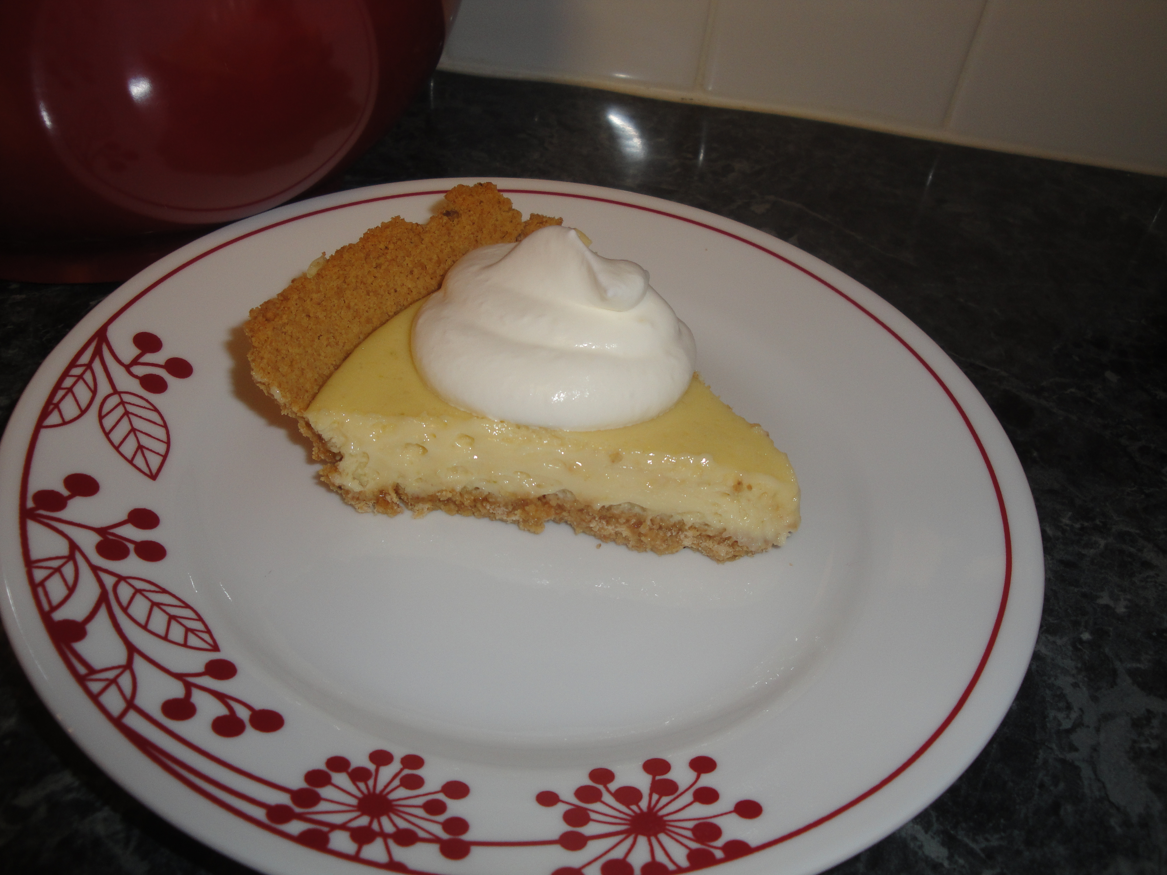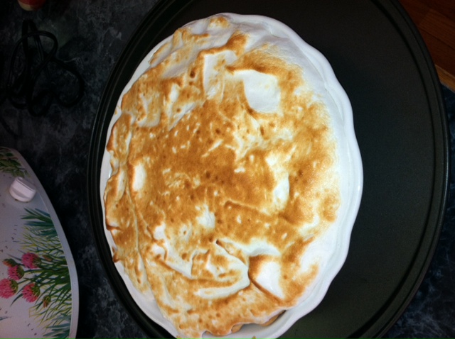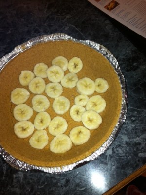 I found a recipe online a while back and I forgot about it–until today when I noticed I had some bananas ready to use. Luckily, I also had all the other ingredients around for the pie.