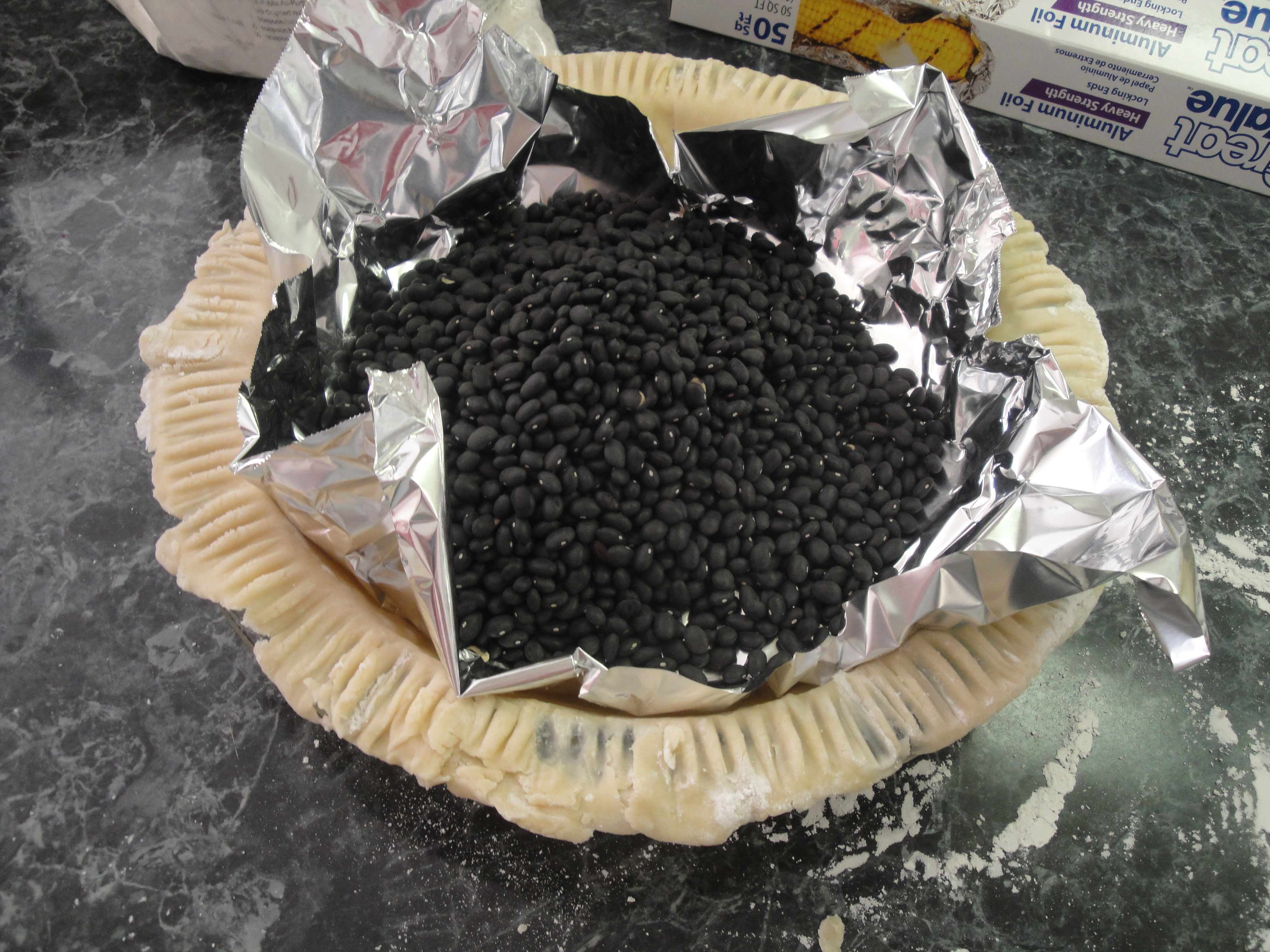 I chopped about 4 ounces of semi-sweet baking chocolate and melted it with butter and a little corn syrup on the stove top. Melty chocolate is very tempting, but I did not lick the spoon until AFTER the pie was done.