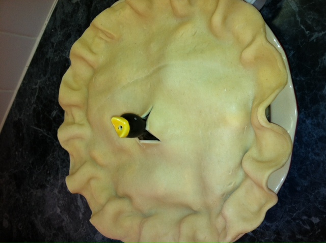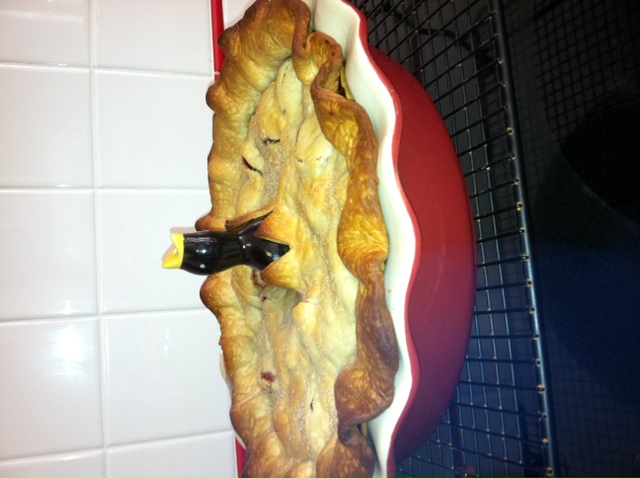 I think the finished pie looks tasty, and I’m anxious to see a slice of it tonight. I love the way layered ingredients look in a slice of pie.