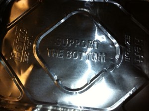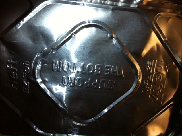 It’s on the bottom of one of those throw-away pans you use to take a casserole to someone. Don’t know why, but that pan was preachin’ to me tonight.