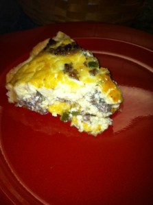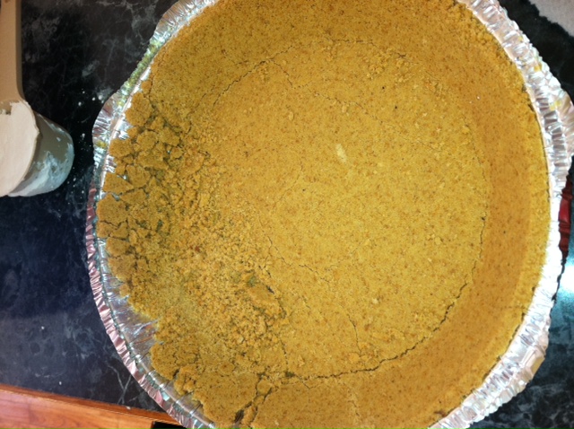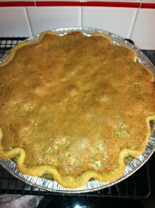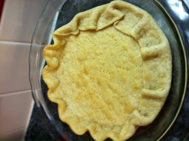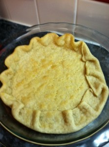It is a store-bought crust that fell from the top shelf of our pantry to the floor (not the first time this has happened–time to reorganize, I guess). Luckily, the plastic cover stayed in tact, so I put it back and declared that I’d find the poor crust’s destiny one day soon.