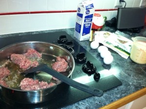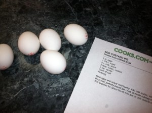 For a custard or cream pie, you usually have to mix stuff in a saucepan until it thickens. So I stirred up sugar, salt, cornstarch, and milk on the stove. Then, my brain obviously crowded with all that “knowledge,” I dumped the daggone WHITES into the saucepan instead of the yolks.