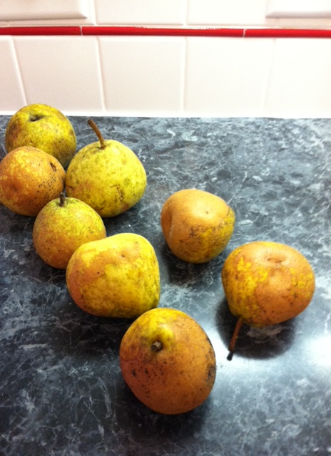 As good fortune would have it, the Lovely Pear Lady came through again. Above are pictured some of her lovely pears. I kept my focus this time, and as I’m typing this, a pear pie is in the oven for her. Boy, those pears smelled perfectly sweet and delicious.